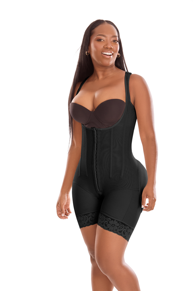 Short Style Girdle with Rods, Thick Straps, 3 Level Hooks, Perineal Zipper